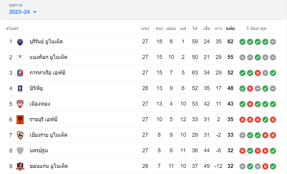 ข่าวประจำวัน ไทยลีก 2023/24 นัดที่ 28 วันที่ 10 พฤษภาคม 2567 admin May 10, 2024 ไทยลีก 2023/24 นัดที่ 28 วันที่ 10 พฤษภาคม 2567จบเกม บีจี ปทุม เปิดบ้านชนะ ขอนแก่น ยูไนเต็ด ด้วยประตูรวม 3 ต่อ 2บีจีปทุม แข่ง 28 นัด อยู่อันดับ 4 มี 48 คะแนน ส่วนขอนแก่น มี 32 คะแนน อยู่อันดับที่ 9 ของตารางไทยลีก Continue Reading Previous: TOA ทุ่ม 8.4 ล้าน เช่าเหมาลำ ขนทัพทีมช้างศึกไทย ดวลแข้งจีน คัดเลือกฟุตบอลโลก-มาดามแป้ง ขอบคุณจากใจ พร้อมเตรียมทีมให้ดีที่สุดNext: ไทยลีก 2 เพลย์ออฟ วันที่ 11 พฤษภาคม 2567 นครศรีฯ ยูไนเต็ด ผ่านเข้าไปชิงชนะเลิศเป็นทีมแรก Leave a Reply Cancel replyYour email address will not be published. Required fields are marked *Comment * Name * Email * Website Save my name, email, and website in this browser for the next time I comment. Δ Related Stories สเปน 2-1 อังกฤษ นัดชิงชนะเลิศยูโร 2024 สเปนแชมป์ 4 สมัย อังกฤษ รองแชมป์ 2 สมัยติด ข่าวประจำวัน สเปน 2-1 อังกฤษ นัดชิงชนะเลิศยูโร 2024 สเปนแชมป์ 4 สมัย อังกฤษ รองแชมป์ 2 สมัยติด July 15, 2024 ทีมชาติไทย เสมอ ออสเตรเลีย 1 ประตูต่อ 1 ใน 90 นาที แต่แพ้การดวลจุดโทษ รวม 8 ประตูต่อ 9 1 min read ข่าวประจำวัน ทีมชาติไทย เสมอ ออสเตรเลีย 1 ประตูต่อ 1 ใน 90 นาที แต่แพ้การดวลจุดโทษ รวม 8 ประตูต่อ 9 July 3, 2024 ฟุตบอลชิงแชมป์อาเซียน รุ่นอายุไม่เกิน 16 ปี 2024 นัดชิงชนะเลิศ ครึ่งเวลาแรก ไทย 1 – 1 ออสเตรเลีย 1 min read ข่าวประจำวัน ฟุตบอลชิงแชมป์อาเซียน รุ่นอายุไม่เกิน 16 ปี 2024 นัดชิงชนะเลิศ ครึ่งเวลาแรก ไทย 1 – 1 ออสเตรเลีย July 3, 2024