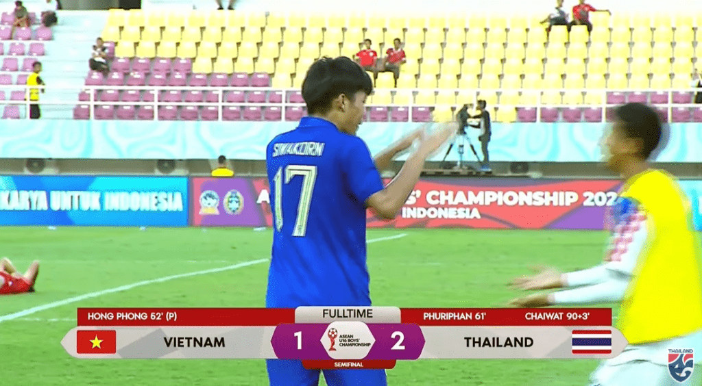 เด็กไทยชุด U16 ทำได้ หลังจากโดนเวียดนามนำไปก่อนจากลูกโทษที่จุดโทษ นาทีที่ 52 แต่ไทยมายิงคืนได้ 2 ประตู จาก ภูริพันธ์ นาทีที่ 61 และ ชัยวัฒน์ นาทีที่ 90+3 แซงชนะเวียดนามเข้าไปรอชิงชนะเลิศ ระหว่างทีมชาติ ออสเตรเลีย หรือ อินโดนีเซีย ที่จะแข่งขันคู่ถัดไป ซึ่งนัดชิงชนะเลิศจะมีขึ้นในวันที่ 3 กรกฎาคม 2567